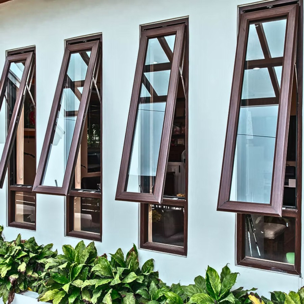 Louver ventilators allow controlled air circulation with angled slats, making them ideal for bathrooms and utility areas. Top-hung ventilators open outward from the top, preventing rainwater entry while ensuring fresh air flow.